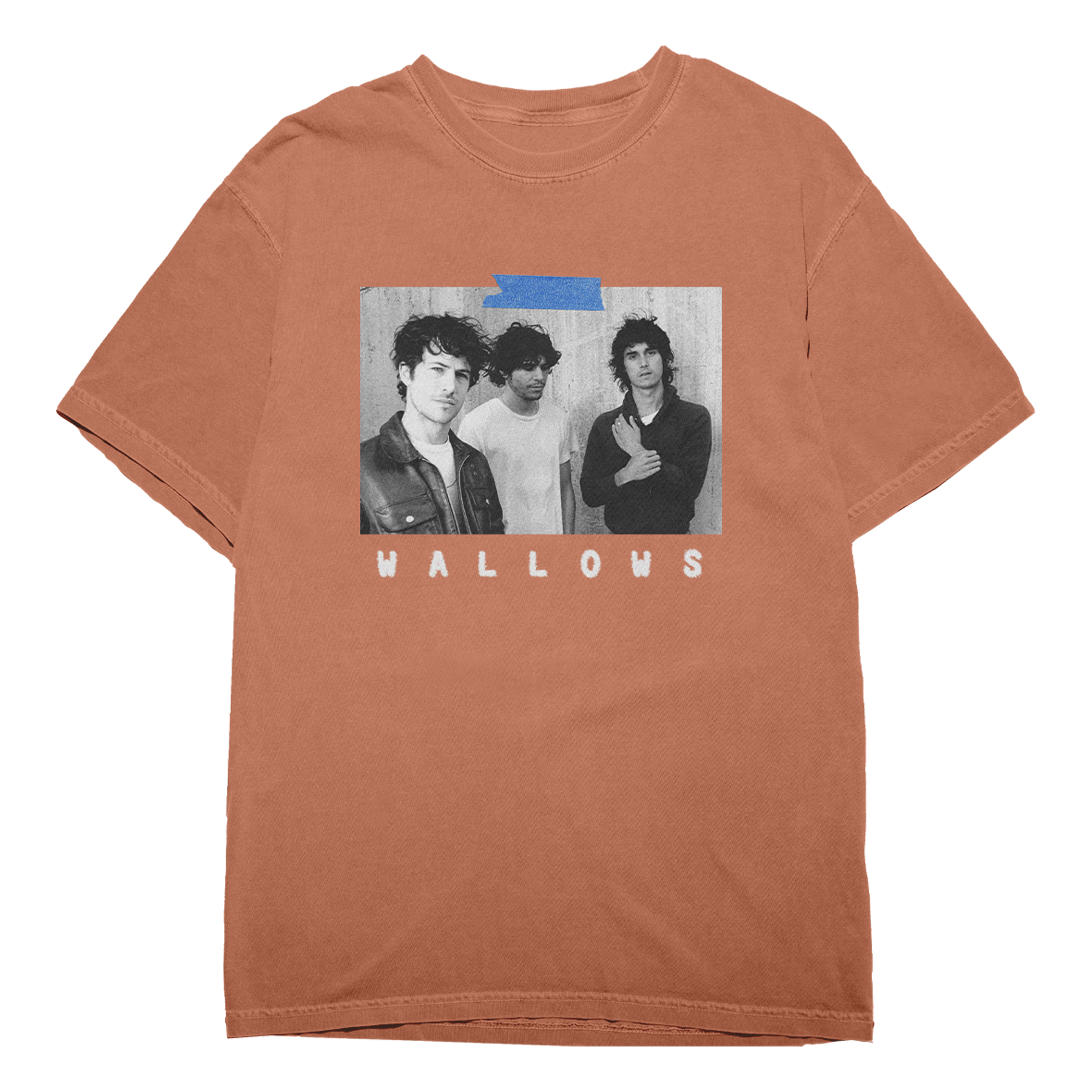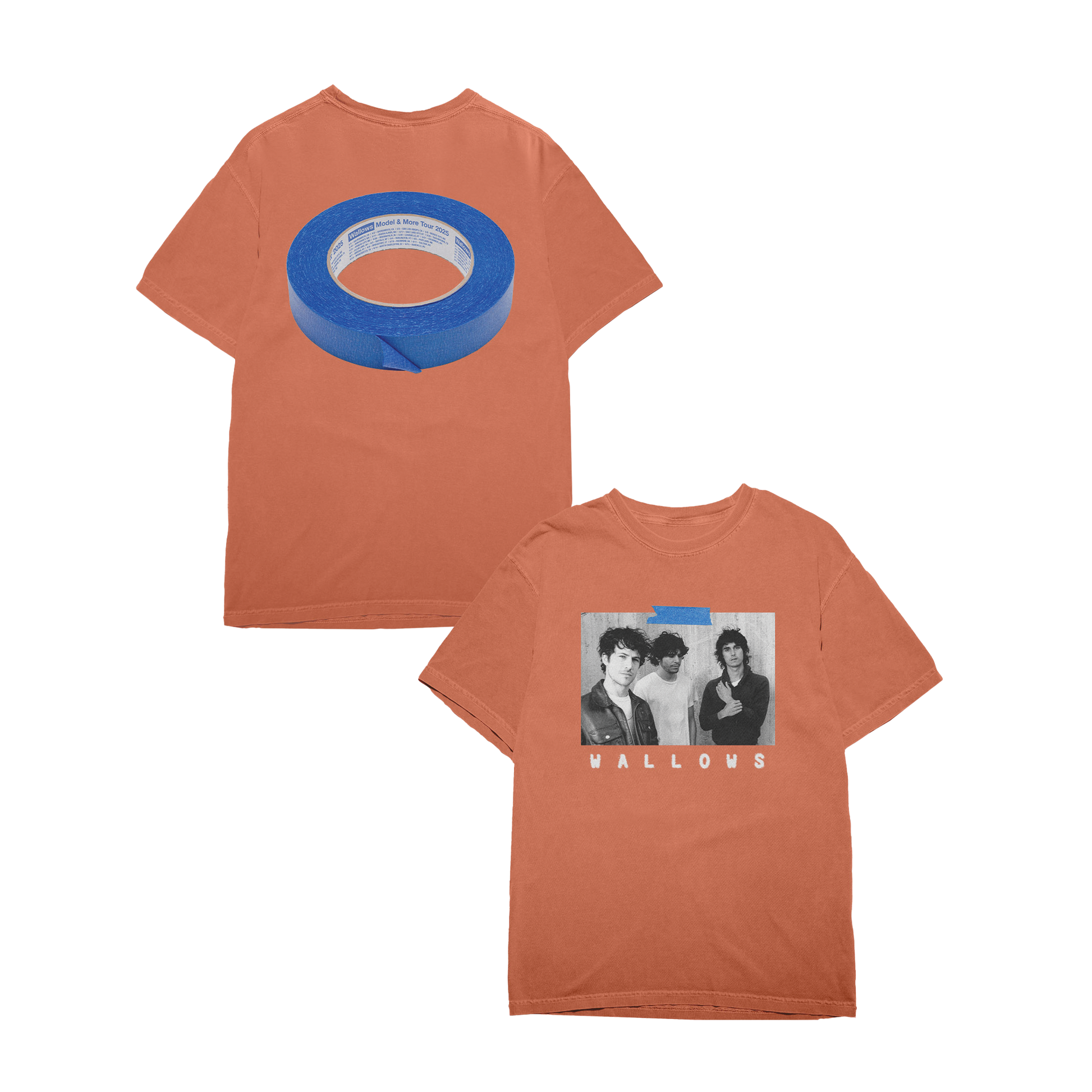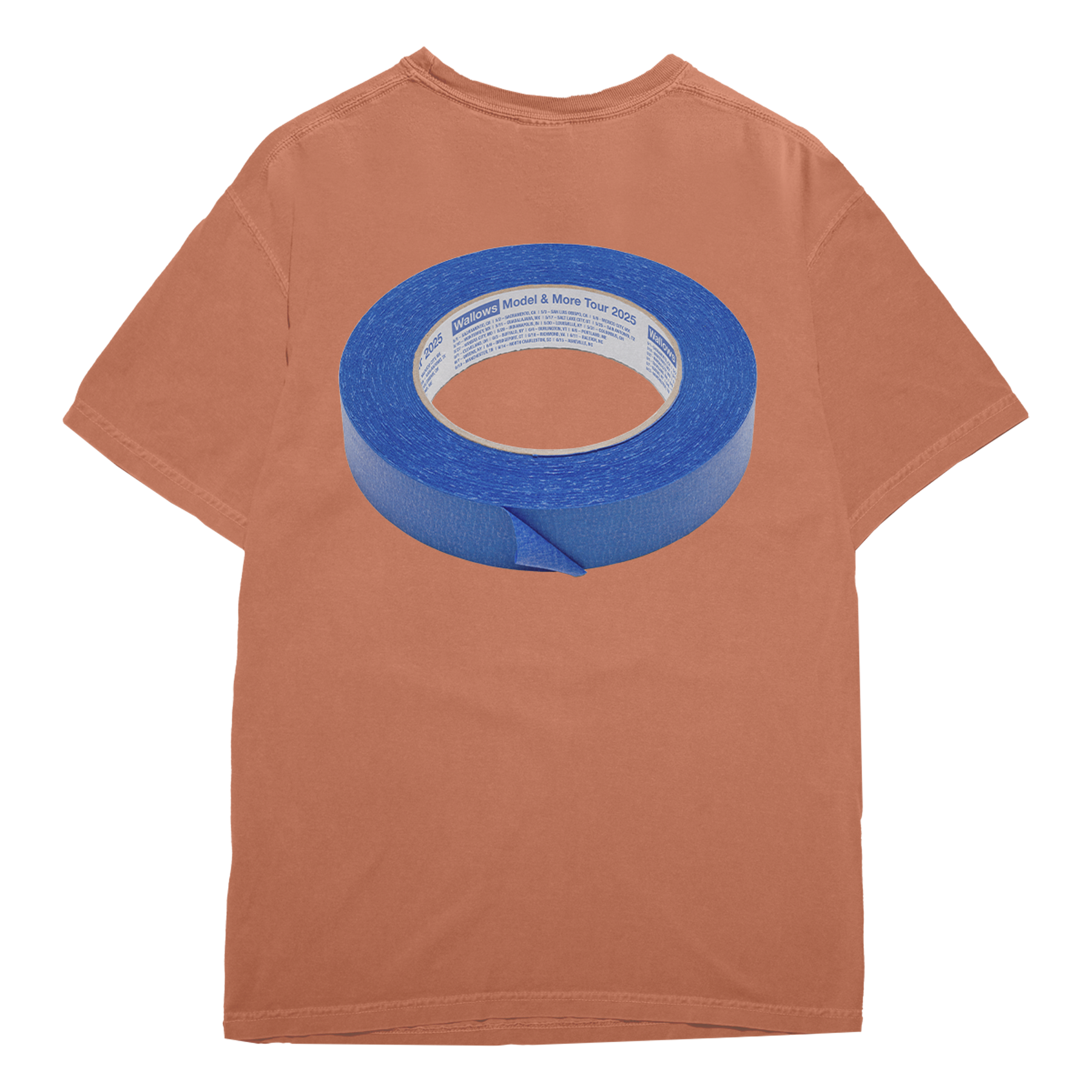 “Tape Tour” graphic printed on the front + May-June 2025 dates printed on the back of a Burnt Orange tee.